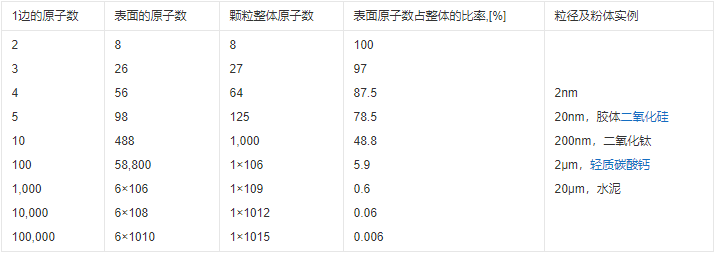 表1表示出具有立方結(jié)晶格子的固體(假設(shè)原子間距為2×10-10m時(shí))不斷地被細(xì)化時(shí),固體顆粒表面的原子數(shù)占固體顆粒整體原子數(shù)的比率。粒徑在20μm顆粒表面的原子數(shù)占整體的比率幾乎可以忽略;但是粒徑小到2nm時(shí),構(gòu)成顆粒原子的半數(shù)在表面上,造成顆粒表面能的增加。這就是超微顆粒具有與通常固體不同物性的原因之一。反應(yīng)性、吸附性等與表面相關(guān)的物理化學(xué)性質(zhì),隨著粒徑的變小而強(qiáng)化。