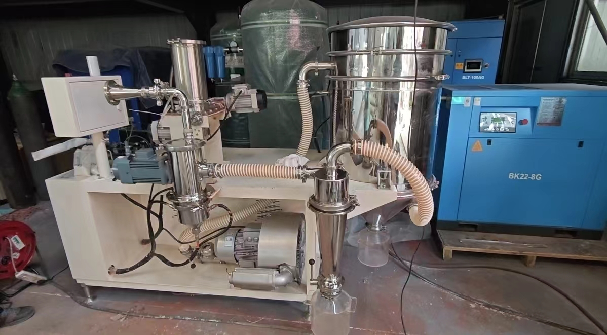 ? ? ? ? ? ? ? ? ?本實(shí)驗(yàn)通過氣流粉碎機(jī)成功將偶氮二甲基粉碎,達(dá)到了客戶的要求。實(shí)驗(yàn)結(jié)果表明,氣流粉碎機(jī)是一種有效的? 粉碎設(shè)備,可用于制備超細(xì)粉體材料。通過調(diào)整研磨氣壓力和震動(dòng)頻率,可以實(shí)現(xiàn)所需的粒度分布。此外,粒度分析儀和真空干燥箱的使用也保證了實(shí)驗(yàn)結(jié)果的準(zhǔn)確性和可靠性。